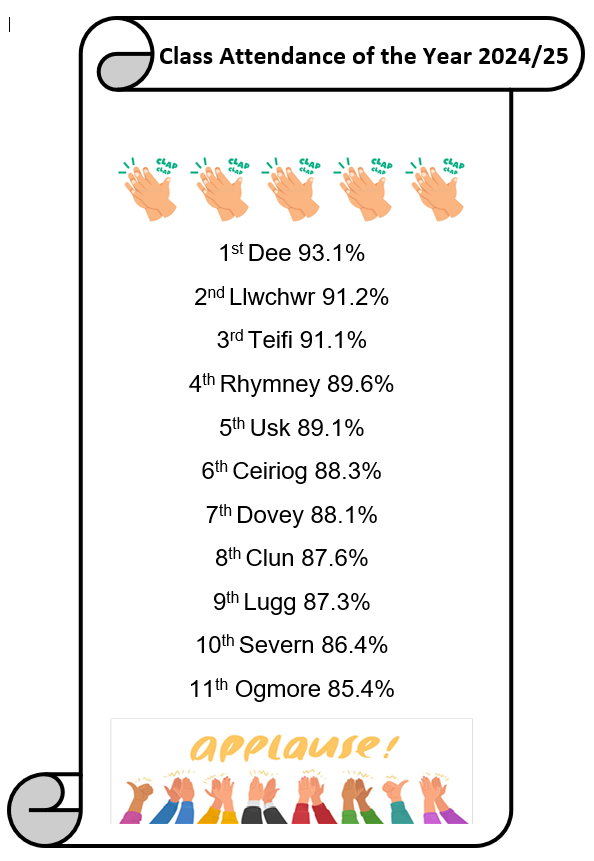 Last year's attendance winners - Dosbarth Dee! Da iawn Pawb!