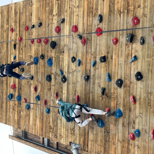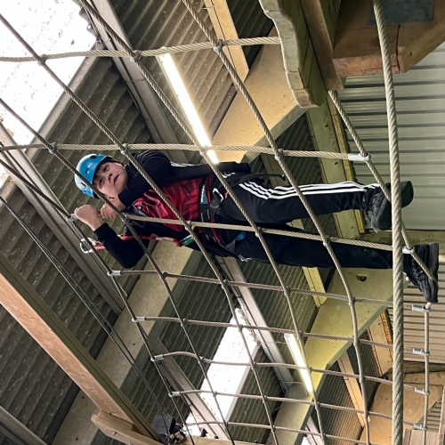 Year 6 are on our residential trip. We all arrived safely and have settled in well. This afternoon we used team work and ropes to stack crates and climb up the very high climbing wall. ,